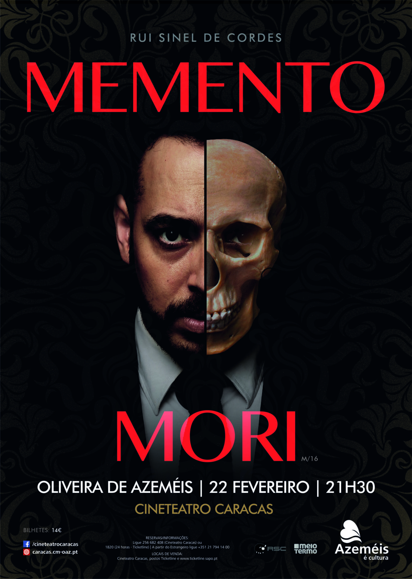 O Cineteatro Caracas promove, no dia 22 de fevereiro pelas 21h30, o espetáculo “Memento Mori” do mestre do humor negro português Rui Sinel de Cordes. "Memento Mori" é o nome do sétimo solo de stand-up comedy de Rui Sinel de Cordes. O título aponta para a morte, mas este é um espectáculo sobre a vida e o que fazemos dela. Acima de tudo, é mais um solo original de um humorista que não tem jeito para a escrever sinopses. Agora, no palco? Imperdível.