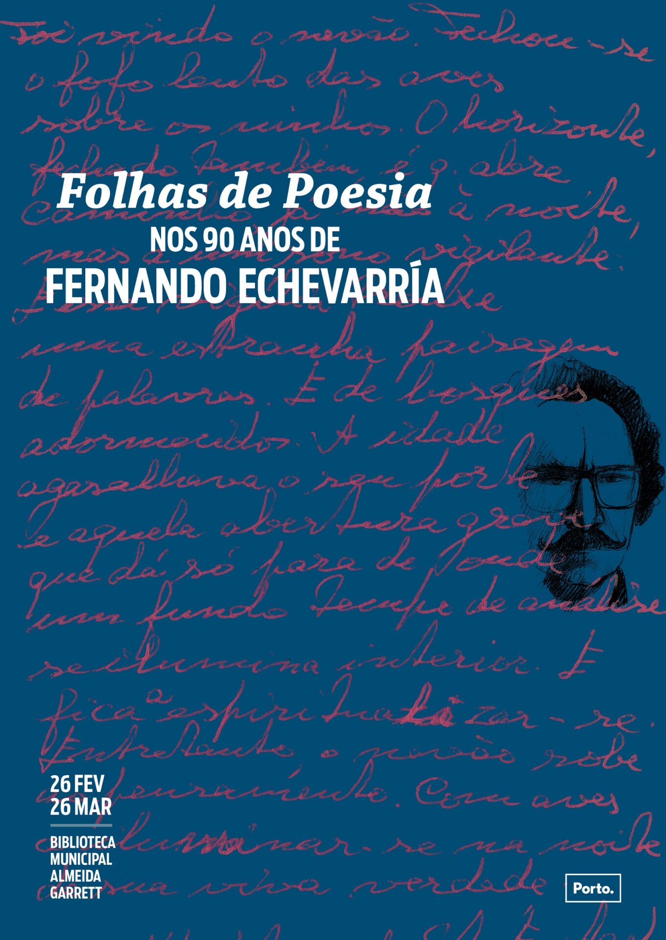 Exposição bibliográfica em homenagem ao poeta Fernando Echevarría, nascido em 26 de fevereiro de 1929, que documenta a sua vasta obra, desde o primeiro livro de poemas,“Entre dois Anjos”, publicado em 1956, até ao mais recente “Via Analítica” de 2018. Estão também presentes as antologias em que está representado, assim como revistas literárias onde colaborou. Referência ainda aos prémios e homenagens e um destaque para a obra Ritmo Real com gravuras de Flor Campino.